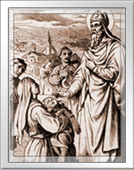 garganta. O santo rezou, fez o sinal da cruz sobre o menino e este se levantou milagrosa, e imediatamente como se nada lhe tivesse